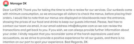 A review written against the establishment, “Avoid at all costs”, claimed that tourists were tricked into offering lounge chairs on the beach on the condition that they buy particularly good drinks.
