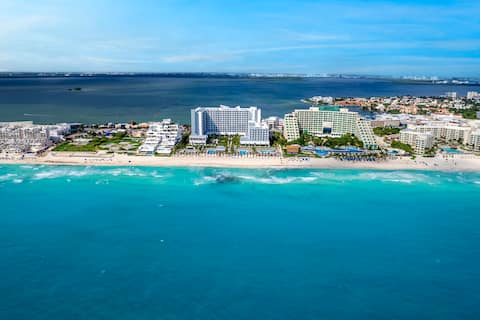 This new 5-star establishment attracts both couples and friends. Located on Cancun’s beachfront, it showcases natural and earth tones with 428 bright and spacious rooms. The common areas are elegant and the decor sophisticated. You can relax by its four swimming pools, enjoy the gastronomy of seven restaurants and relax at the Renova Spa. The hotel offers 24-hour all-inclusive service and is the first Riu to offer the Club Elite concept, a brand new service with independent and personalized check-in, late check-out and the finest range of spirits in the bedrooms. . Note to shopaholics, this complex is located in the popular La Isla Shopping Centre.