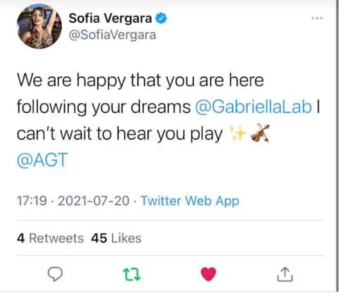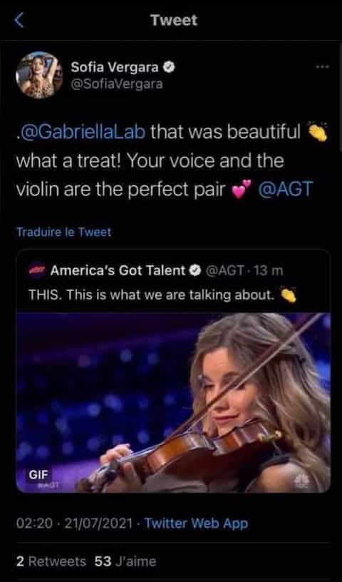 “It’s wonderful. The violin is the perfect complement to your beautiful voice,” praised Sofia Vergara.