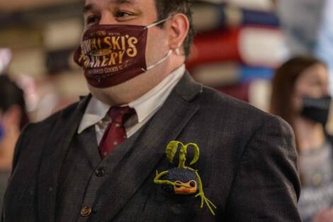 “We’m glad to be here. I love everything about Harry Potter,” the young man said, wearing a red and gold striped griffindor scarf around his neck.