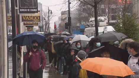 Dozens of people bravely lined up in front of their favorite store in Montreal on Friday in the rain to save good money on Black Friday.