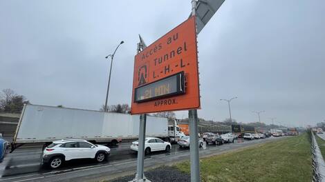Our journalist Kevin Crane-Desmarais saw it. While the real-time travel time sign says it takes 21 minutes to reach the tunnel, the reality is quite different.