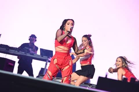 After letting her DJ warm up the crowd for about ten minutes, the 25-year-old artist pulled out all the stops as soon as we saw her appear on the sound. Fulanito. A troupe of energetic dancers, jets of flame and smoke, bright red costumes, rousing rhythms, the audience knows immediately that they have very little chance to catch their breath.