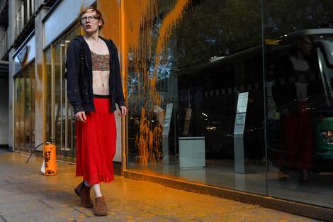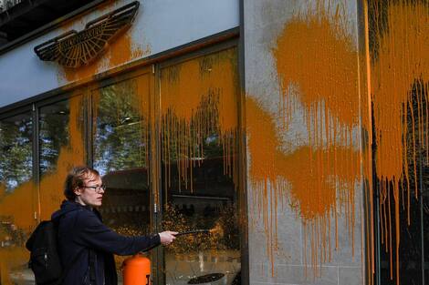 As a group of activists blocked traffic on Park Lane, one of the capital’s most attractive thoroughfares bordering Hyde Park, on Sunday morning, one of them splashed orange paint on the window of an Aston Martin dealership on the street.