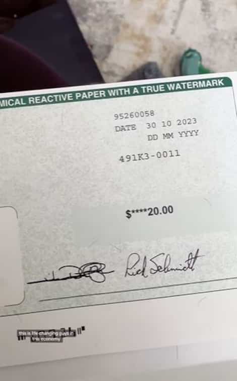 Jen then revealed the check for 20 US dollars ($27 CAN) and said, “This is going to change my life guys. In this economy, $20…can probably buy me an apple.”