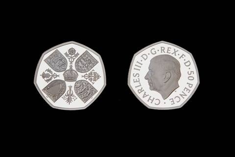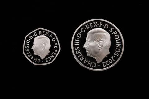 Coins bearing the king’s effigy bear the inscription in Latin: “Charles III. d. G. REX. F. d. 5 pounds 2022″, or “King Charles III, by the grace of God, Defender of the Faith” – one of the sovereign’s titles.