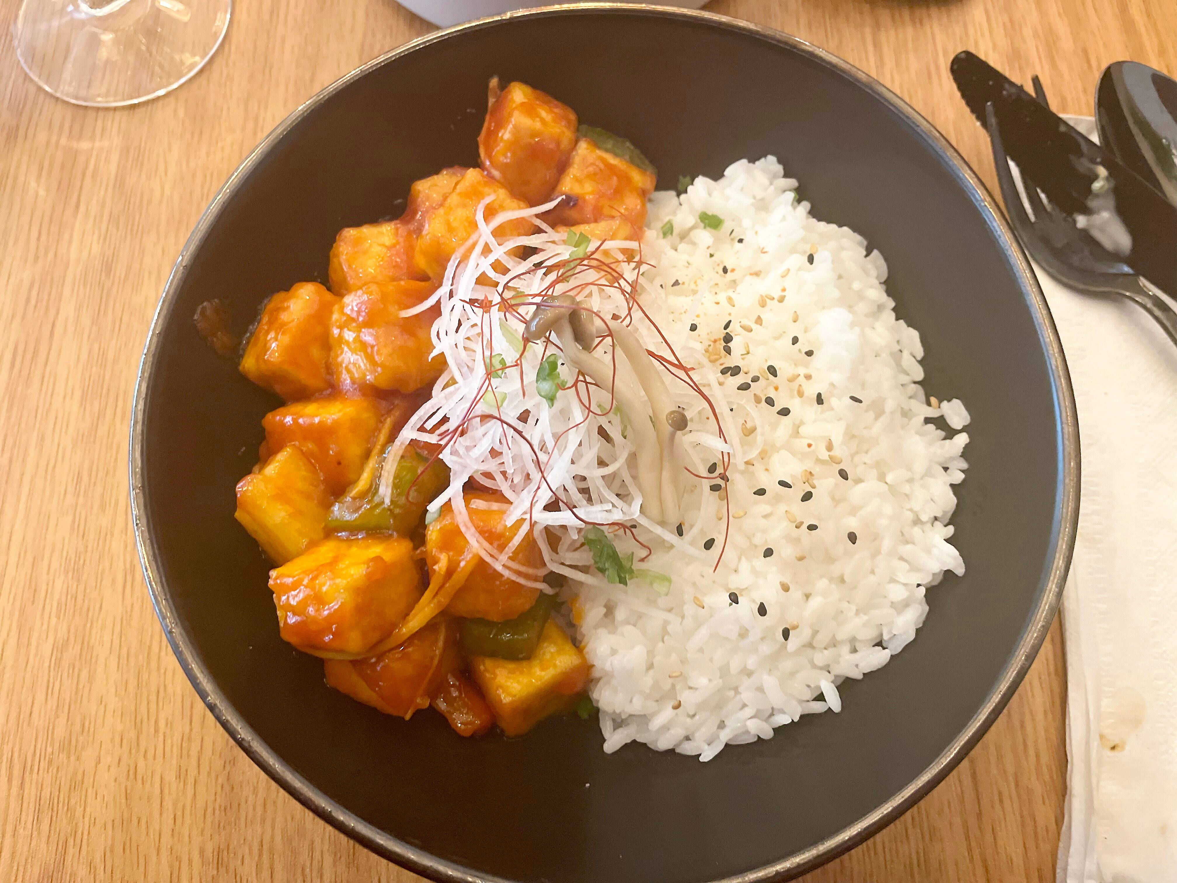 Several vegetarian options are available, including very good crispy tofu in a slightly spicy and sweet sauce.